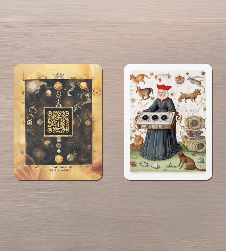 Begleitend zu dieser Musiksammlung hat François Sarhan 80 Motivkarten entworfen, die die Grundlage des LOGBOOK Kartenspiels bilden, das separat erworben werden kann. Das Zafraan Ensemble spielt die musikalischen Tagebucheinträge, die Teil des Kartenspiels sind und das Ensemble asamisimasa spielt neue Einträge – somit entsteht eine neuartige Performance mit älteren und neuen musikalischen Logbuch-Einträgen.
